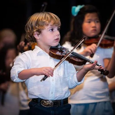 Talent Education usually begins at an early age. Dr. Suzuki suggests that parents play classical music for their children from birth, with formal music instruction beginning a few years later. Suzuki Method instruction combines the three elements of listening, practicing, and performing, with the student, parent and teacher working closely together. At the Academy, the triangle of the student, parent and teacher continues to collaborate through all playing levels, from “Twinkle, Twinkle Little Star” through Mozart violin concertos.